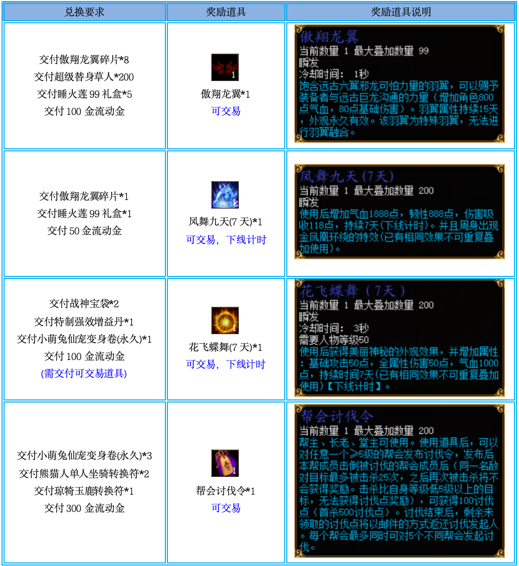 活动期间,NPC“藏宝阁阁主”处可兑换以下道具: