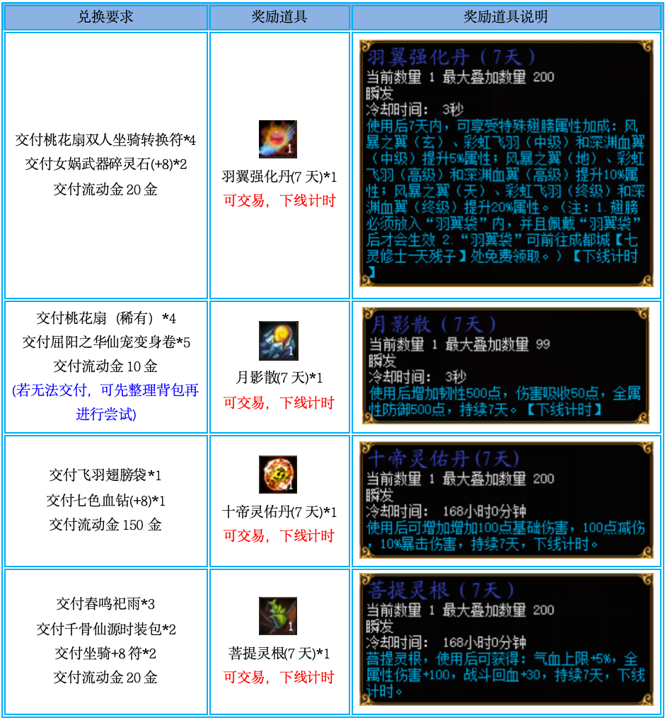 3、请在本次活动结束前进行兑换,活动结束后本次可兑换道具将全部下架。